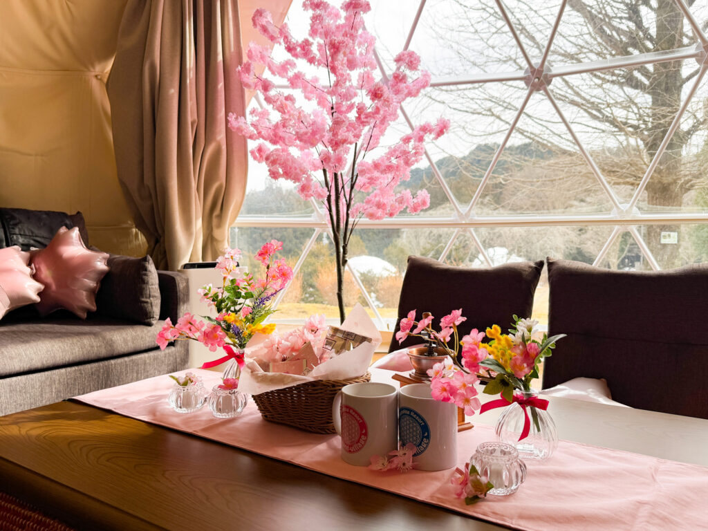 | プラン名 | 【1日1棟限定】室内はいつも満開♪桜舞うお花見グランピング<1泊2食付> |