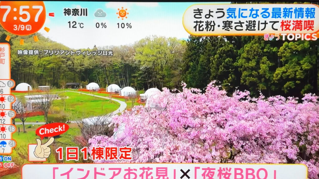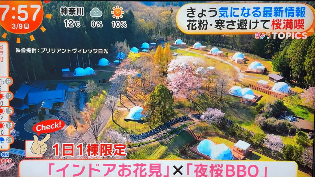 本日3月9日(月)、フジテレビ系列「めざましテレビ」のニュースコーナーにて、ブリリアントヴィレッジ日光をご紹介いただきました!
