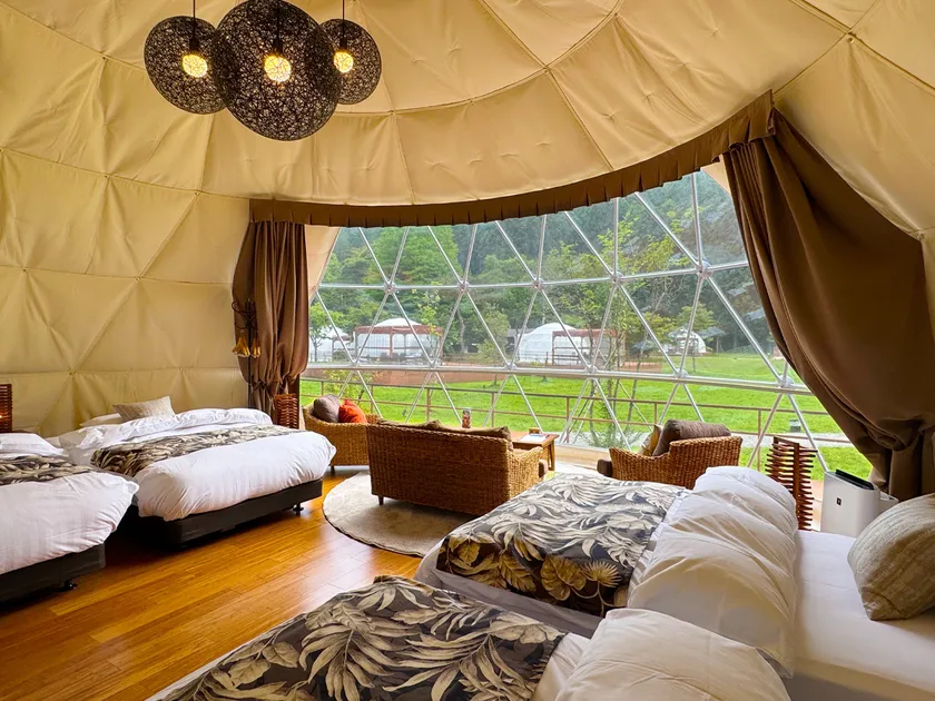 キャンプやBBQにつきものの「事前の買い出し」「重い荷物の運搬」「面倒な火起こしや後片付け」は一切不要。冷暖房完備の快適なドーム型テントでホテルのように寛ぎながら、日光の大自然と夏のレジャーを丸ごと満喫していただけます。