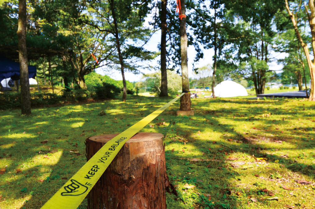 木々の間を流れる涼やかな風を感じながら、自然と一体になれる遊び場。大人も童心に帰れる「森のブランコ」や、木漏れ日の下で極上の昼寝を楽しめる「ハンモック」。そして、集中力と体幹を研ぎ澄ます「スラックライン」まで。