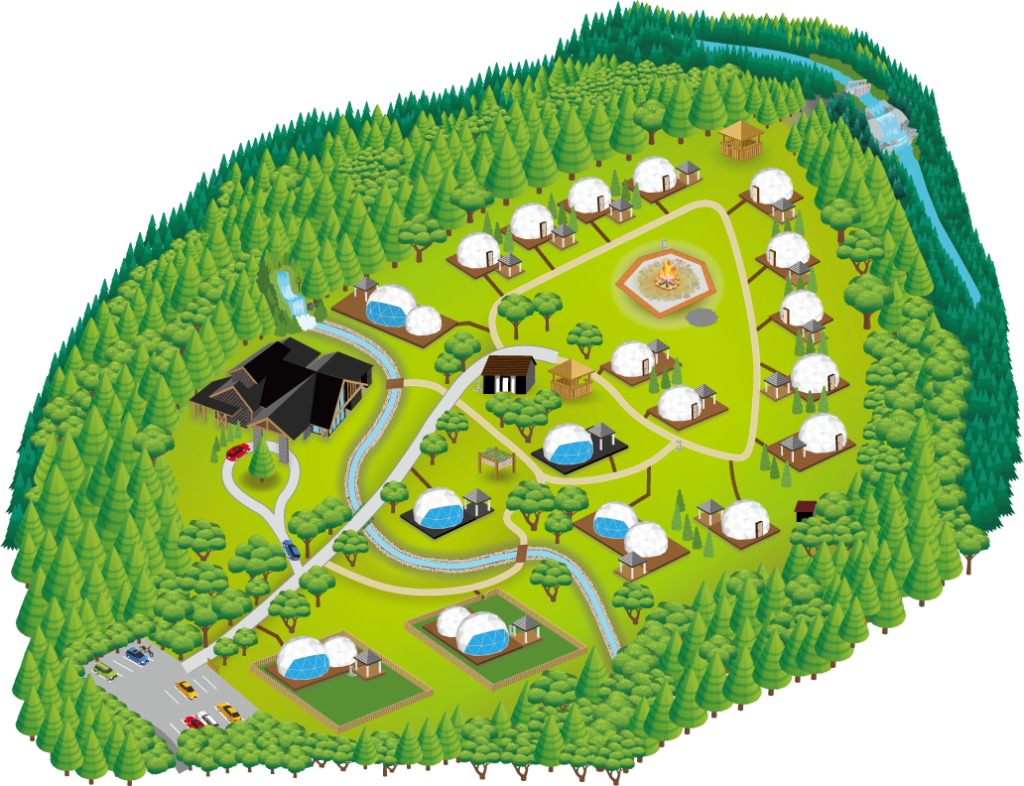 お部屋の中も広々と、室内には冷暖房を完備しており、オールシーズン快適にお過ごしいただけます。都会の喧騒を離れて、自然の音を楽しみながら非日常を満喫!心地よい滝の音は癒しの音色、他では味わえない満足感があります。